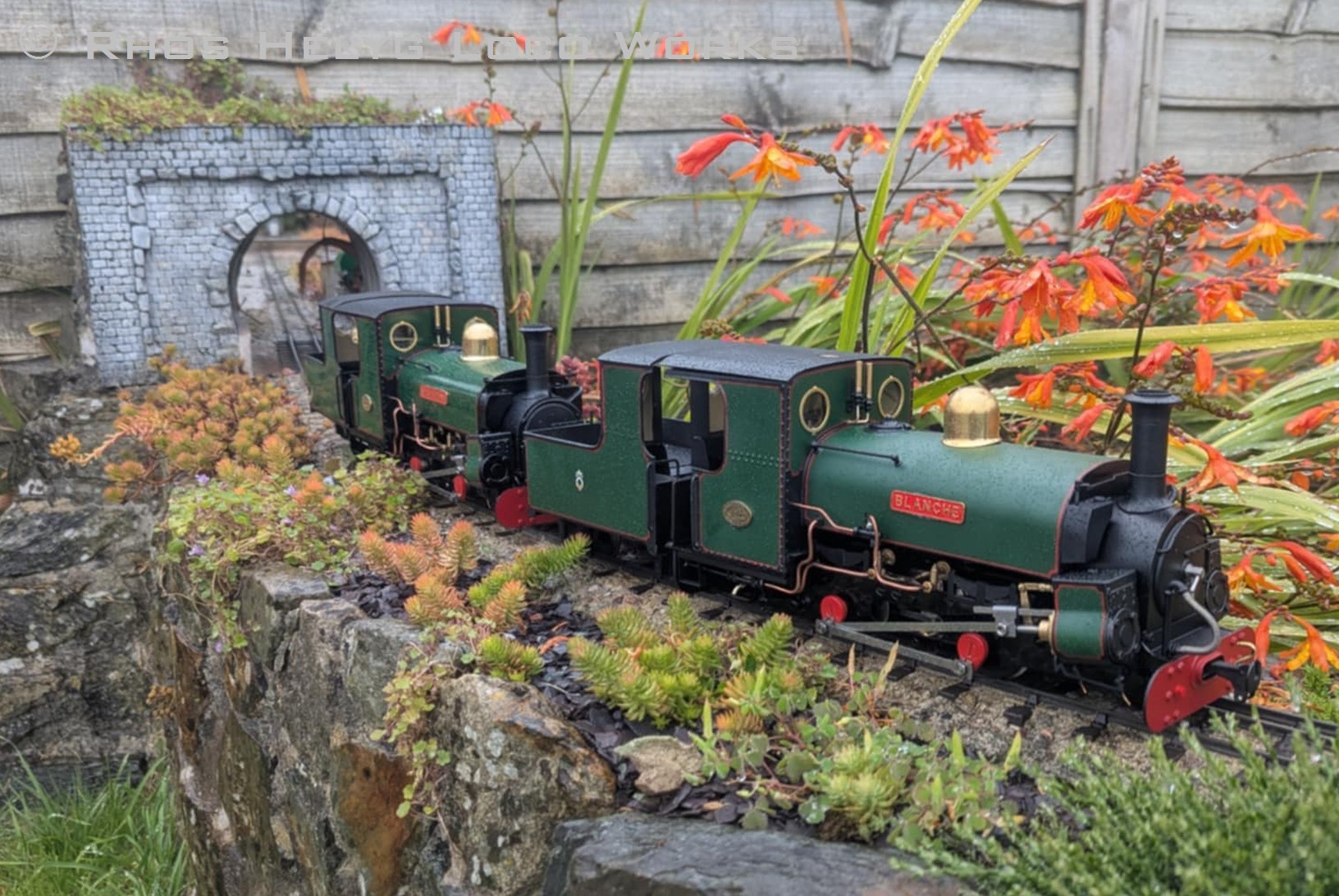 Built on a Roundhouse chassis, both of these locos received new bodies made by Shawe Engineering for loco and tender based on the Festiniog Railway's Blanche, rather than the more common Linda. The level of detail is outstanding and I was delighted to be asked to paint and line both locos. |