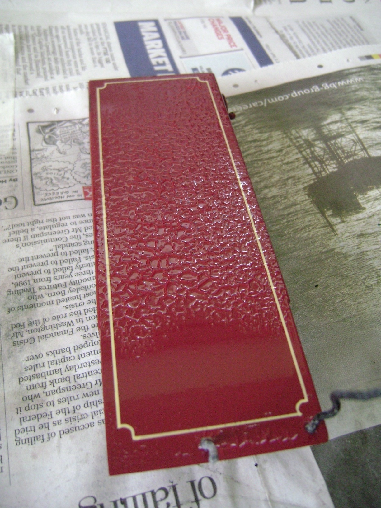 NOTE: Resprays and clear coats can only be applied over existing "factory finish" paintwork of the type used by Accucraft and Roundhouse Engineering. Name, number and works plates and any other bodywork additions must be removed before new paint is applied. While some existing paint damage can be repaired before repainting, that caused by removal of name, number and works plates held in place with glue (usually epoxy or cyanoacrylate) is usually impossible to repair and would probably require complete stripping of the existing paint by the owner before despatch. Also, due to the possibility of adverse paint reactions (see here) due to incompatible paint types, any other coatings would have to be removed back to bare metal by the owner and before application of etch primer, paint and clear coat as required.